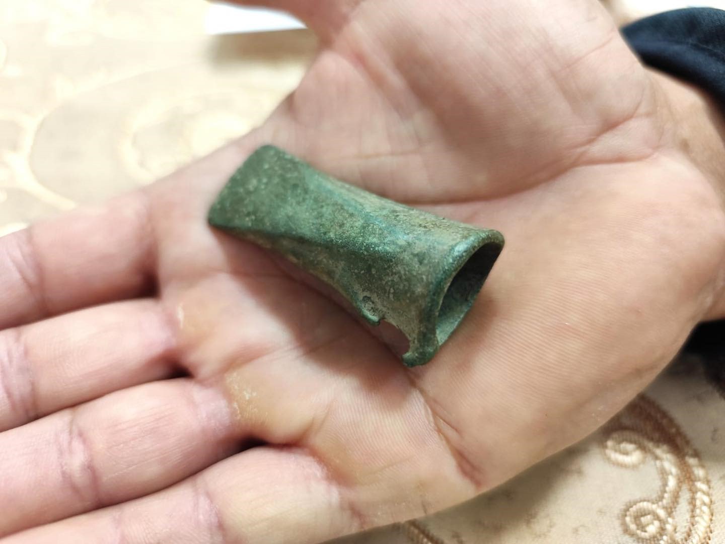 Piesa a fost descoperită și adusă la Muzeul Județean Gorj „Alexandru Ștefulescu” de Ion Vintilescu, un localnic din zonă, care se ocupă cu detecțiile. „După câteva semnale de conserve a apărut și acest obiect, care mi s-a părut foarte vechi. Am ajuns acasă și am zis să verific pe internet. Spre surprinderea mea, am văzut că…