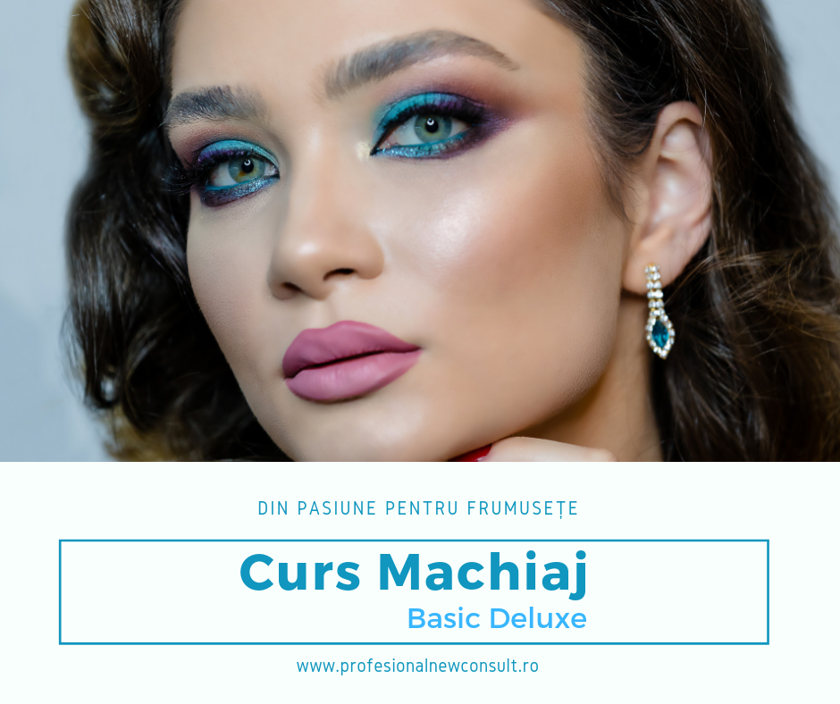 În cadrul acestui curs veţi dobândi noţiuni teoretice şi veţi realiza, sub atenta supraveghere a trainerilor, mai multe tipuri de machiaj, dar şi tehnici diferite precum: machiajul de corecţie a feţei (contouring umed, contouring uscat, contouring cremos), machiaj Pin Up, machiaj de searã, machiaj de mireasã realizat cu tehnica baking, machiaj apple realizat cu tehnica creionului dar şi lucrul cu pigmenţii, multi color blending, precum şi multe altele. Acest curs de bazã complex abordeazã toate temele necesare pentru formarea unui make-up artist profesionist, fiind adresat atât fetelor, cât şi baietilor, la finalul acestuia se va obţine diploma acreditatã şi recunoscutã atât în ţarã, cât şi în strãinãtate.