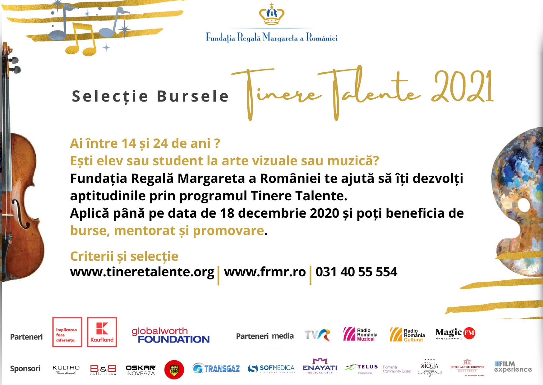 Tinerii talentați din toată țara mai au doar două zile la dispoziție pentru a se înscrie la selecția națională pentru bursele ,,Tinere Talente”, lansată de Fundația Regală Margareta a României.