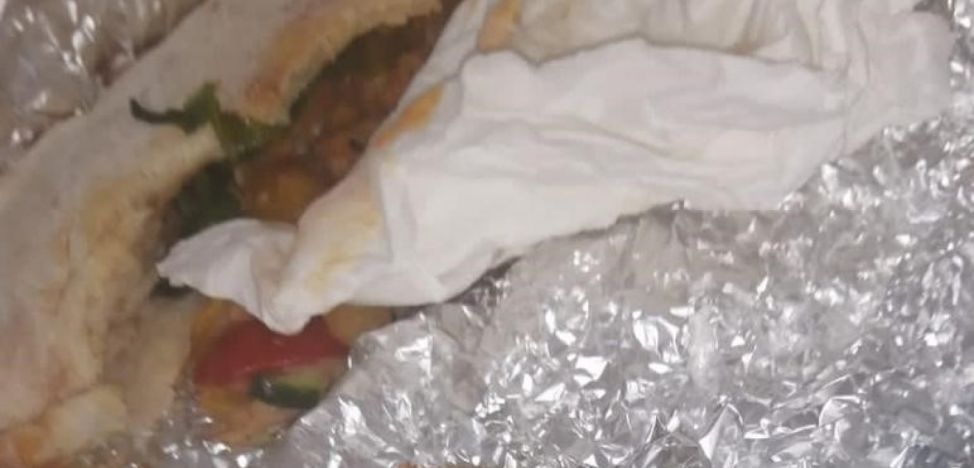 Un client care a cumpărat un hamburger de la un restaurant din Rovinari susţine că a găsit un bandaj în interiorul chiflei şi era cât pe aci să muşte din el.