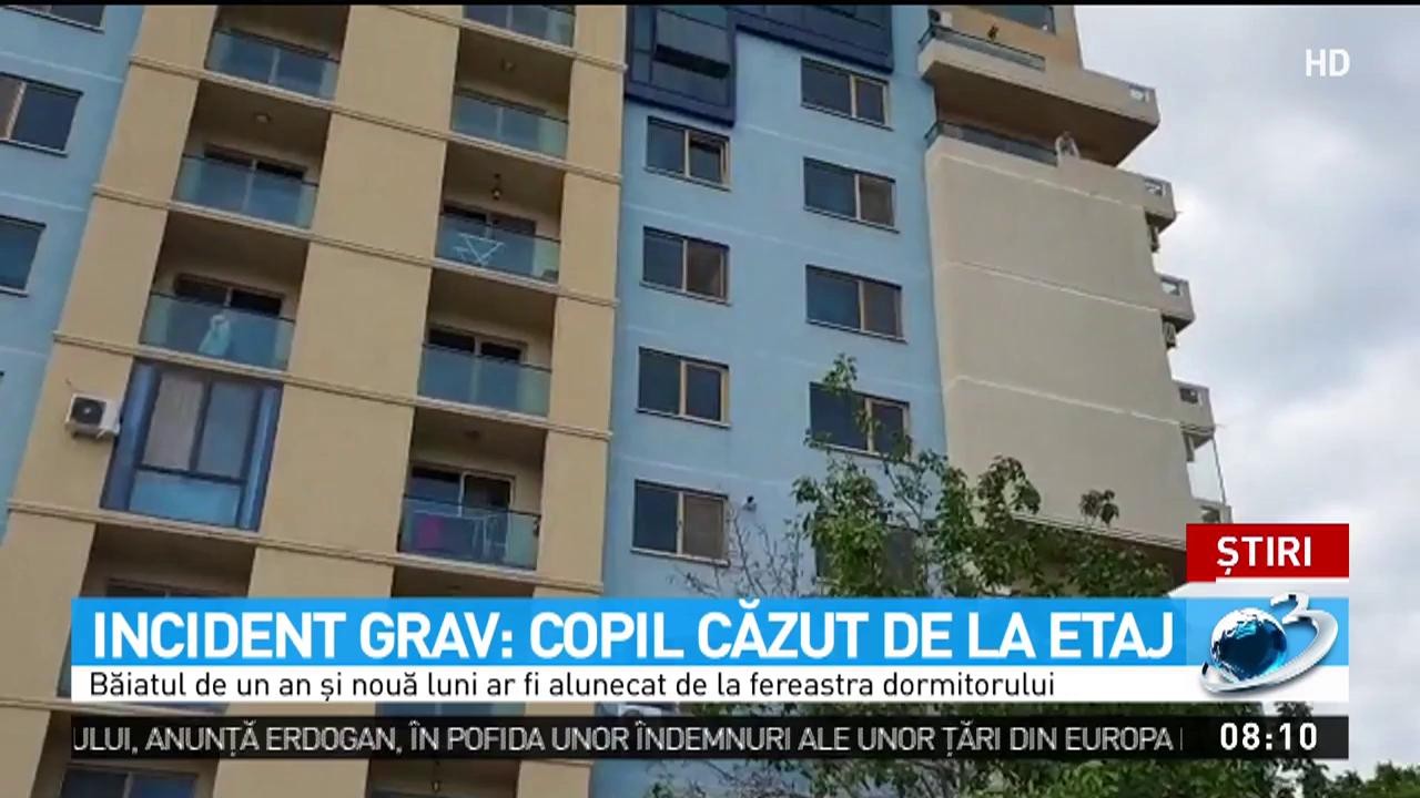 Un băieţel în vârstă de un an şi nouă luni a ajuns a căzut de la etajul al doilea al blocului în care locuieşte, în Motru, judeţul Gorj. Copilul a fost transportat la spital, unde se află în stare gravă.
