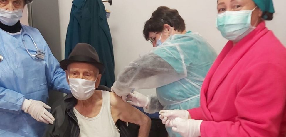 Un gorjean în vârstă de 91 de ani a venit ieri la centrul de vaccinare anti COVID-19 din comuna Stoina, judeţuş Gorj, pentru a se imuniza.