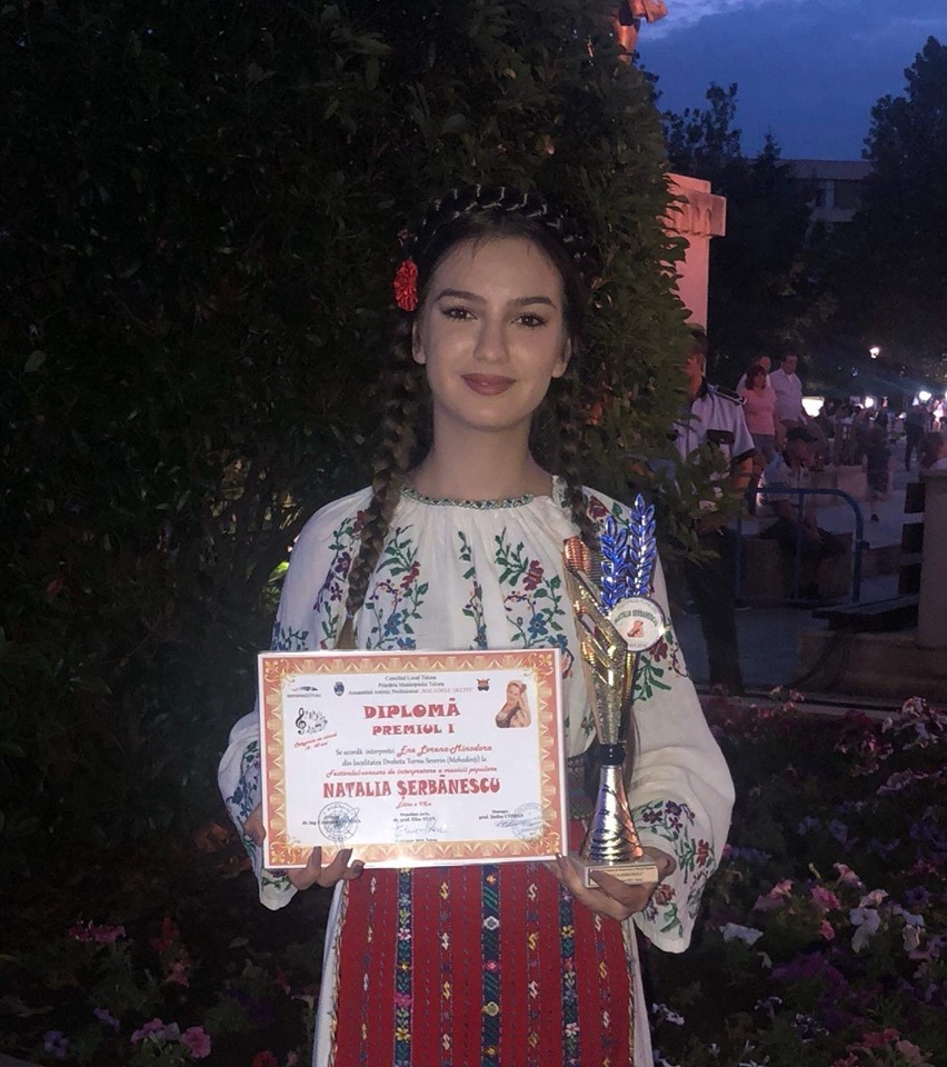 Lorena Ene, cursantă a Școlii Populare de Artă (ȘPA) Târgu Jiu, coordonată de profesoara Maria Loga, a obținut în cadrul Festivalului național de interpretare a muzicii populare „Natalia Șerbănescu”, ediția a IX- a – Premiul I. Evenimentul a fost organizat de Consiliul Local Tulcea, Primăria Tulcea și Ansamblul Artistic Profesionist „Baladele Deltei”. Pentru ediția din acest an s-au înscris 18 soliști vocali la categoria de vârstă 9 – 16 ani, 17 soliști vocali pentru categoria de vârstă 16 – 40 de ani și 3 instrumentiști, concurenți din țară și din străinătate. Juriul a fost compus din Elize Stan, doctor Etnomuzicolog și realizator emisiuni la TVR, Maria Tănase Marin, doctor, interpret, dirijor, pedagog, producător și realizator de emisiuni TV, cercetător în muzica de folclor, Eugenia Florea, doctor etnomuzicolog și realizator emisiuni la TV, Daniela Roxana Gibescu, doctor muzicolog la Casa de Discuri „Electrecord” București, Gabriela Rusu Păsărin, conf. univ. doctor, redactor și realizator de emisiuni folclorice la Radio România Oltenia Craiova, Aurelian Croitoru, dirijor în cadrul Ansamblului Artistic Profesionist „Baladele Deltei”, Coman Ștefan, manager-ul Ansamblului Artistic Profesionist „Baladele Deltei”. Lorena a obținut Premiul I și la Festivalul Folcloric „Aneta Stan”, Cernavodă. ,,Felicitări interpretei si profesorului coordonator!”, a transmis conducerea Școlii Populare de Artă Târgu-Jiu.