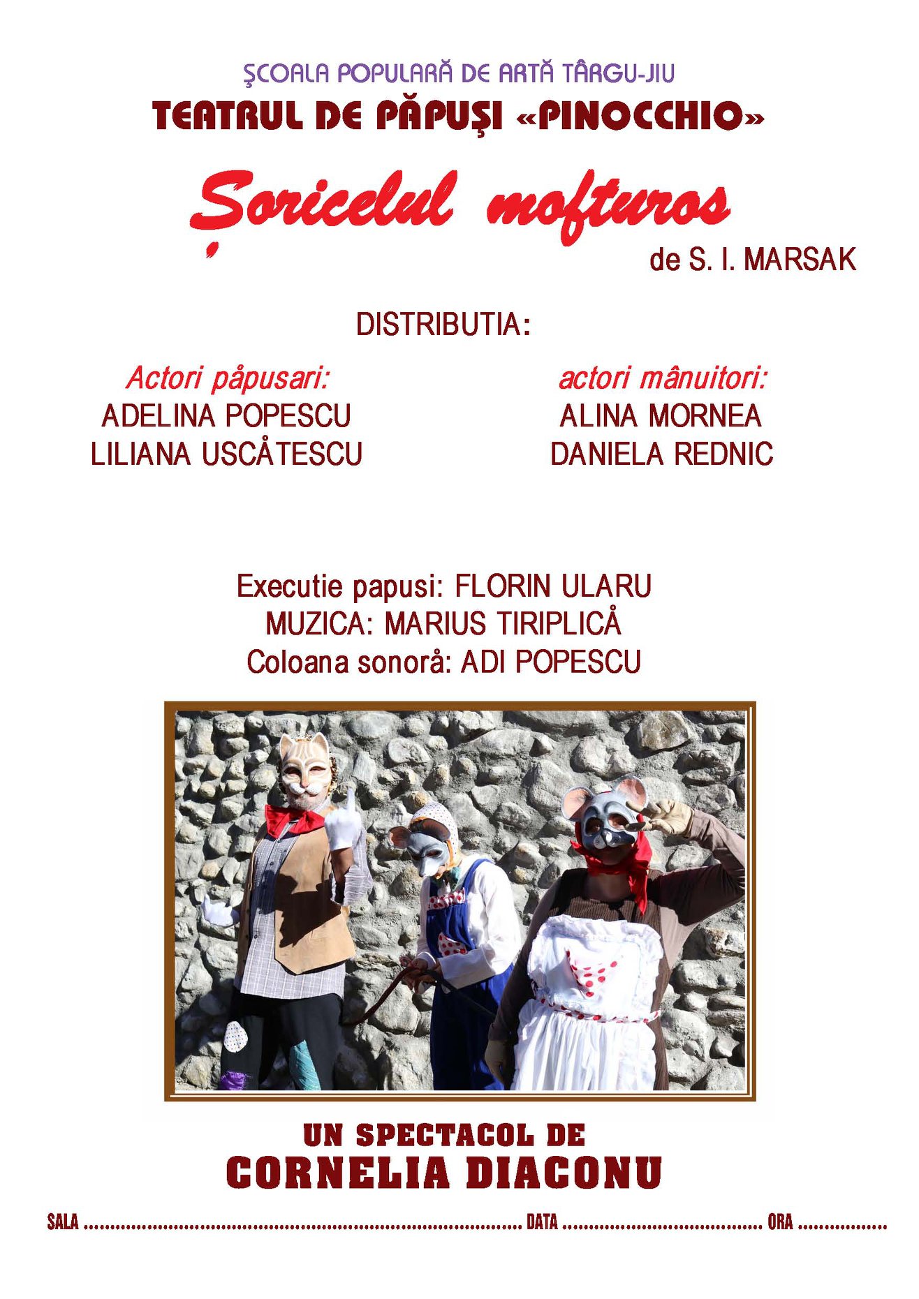 Actorii păpușari de la Școala Populară de Artă Târgu-Jiu sunt pregătiți să-i încânte, din nou, pe micii gorjeni, de această dată cu o piesă intitulată ,,Șoricelul mofturos”. Spectacolul se va desfășura în această dimineață, începând cu ora 10.30, la Teatrul de Vară din Târgu-Jiu. Dacă vremea nu va ține cu organizatorii, evenimentul va fi amânat și reprogramat ulterior.