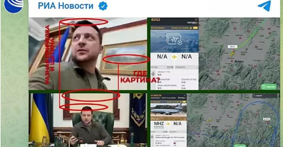 Ria.ru încearcă să susțină această teză citându-i pe cei din proiectul „War on Fake” care se chinuie să demonstreze că înregistrările lui Zelinski din buncăr sunt editate…