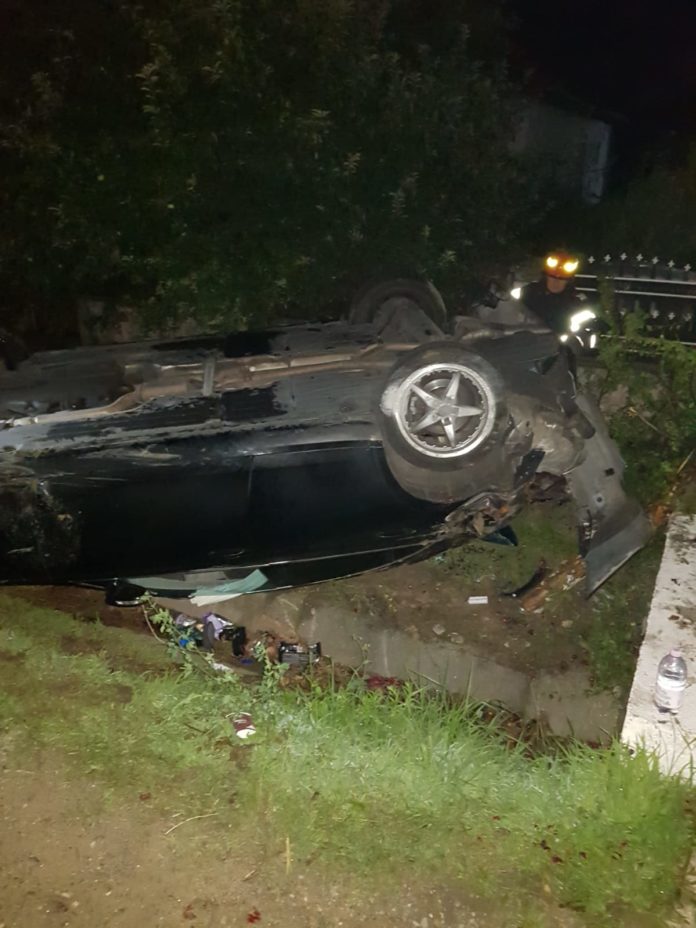 Un tânăr, de 18 ani, s-a răsturnat cu mașina azi-noapte la Plopșoru.