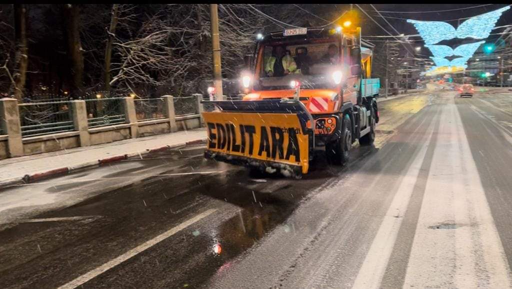 Se circulă în condiții de iarnă la Târgu Jiu. Utilajele pentru deszăpezire au ieșit noaptea trecută pe străzile municipiului Târgu Jiu pentru a înlătura zăpada și pentru a împrăștia material antiderapant.„Avem rugămintea către șoferi să circule cu prudență, să aibă autovehiculele dotate cu anvelope corespunzătoare și să adapteze viteza la condițiile de drum.”, conform primarului din Târgu Jiu, Marcel Romanescu.