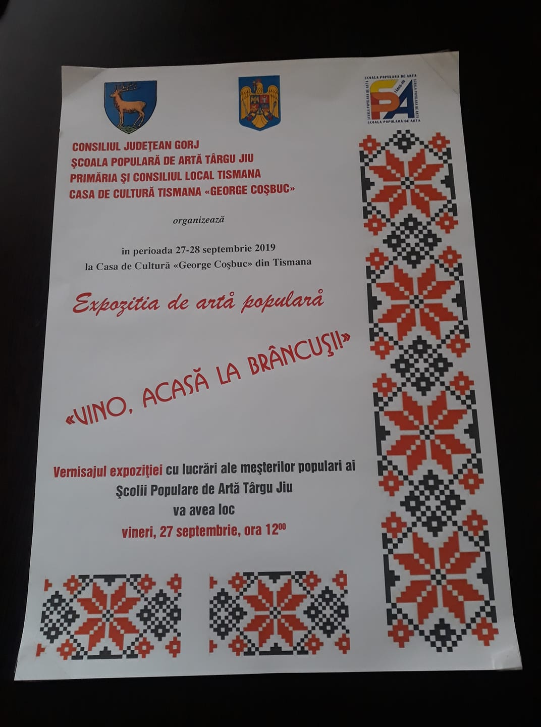 Vernisaj de artă populară, la Tismana