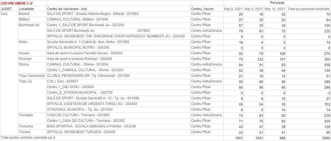 Vezi locurile libere în centrele de vaccinare din Gorj!