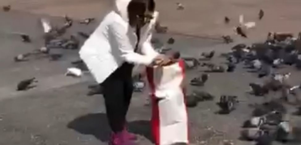 Cunoscuta cântăreaţă de muzică populară Niculina Stoican a venit astăzi în centrul municipiului Târgu Jiu pentru a le oferi mâncare porumbeilor.