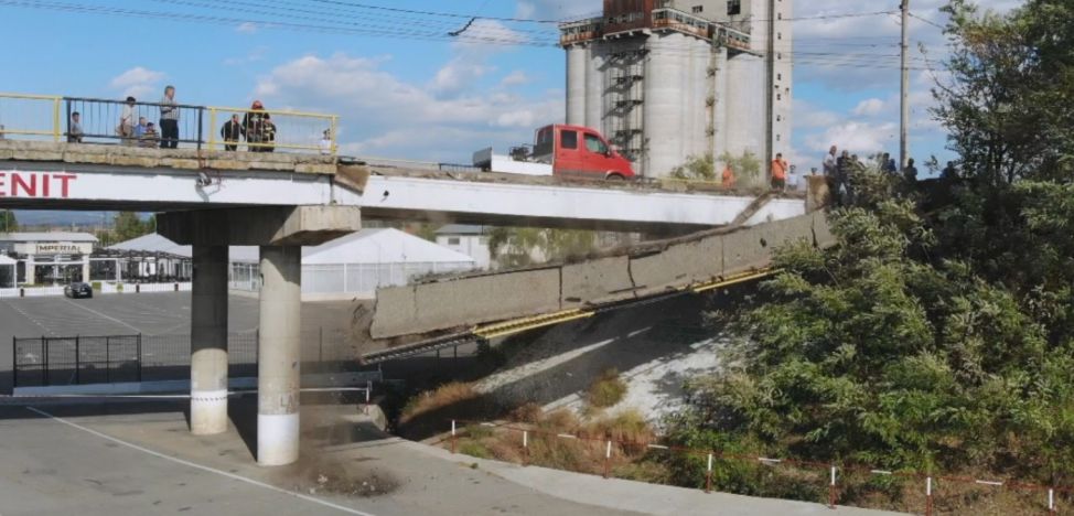 O porţiune din pasarela din zona de nord a municipiului Târgu Jiu, care face legătura cu platforma industrial, s-a prăbuşit, ieri, în mod controlat.