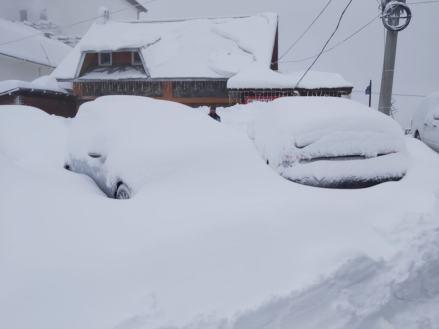 Mașinile turiștilor din Rânca au fost îngropate de nămeți. Oamenii au pus mâna pe lopeți pentru a îndepărta zăpada. De asemenea, drumurile sunt acoperite de nămeți și se circulă cu dificultate.