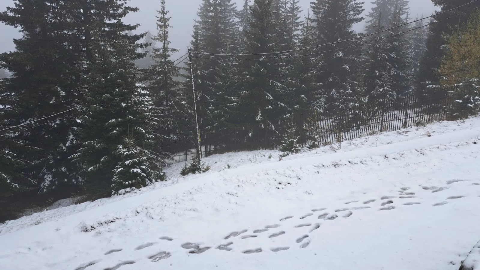 În stațiune este viscol, iar zăpada este adusă pe carosabil.