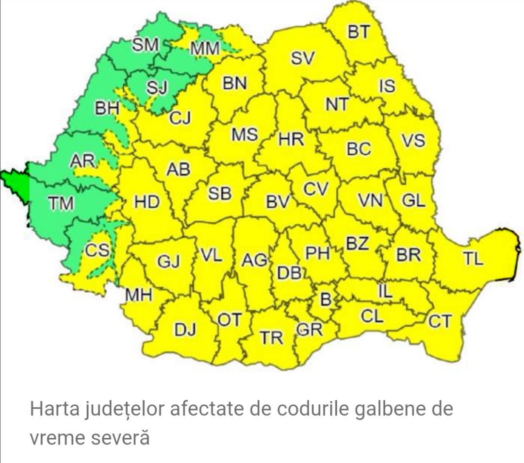 Administrația Națională de Meteorologie a emis, luni, două atenționări cod galben și o informare meteo valabilă pentru aproape toată țara. Meteorologii anunță ploi torențiale, grindină și vânt.