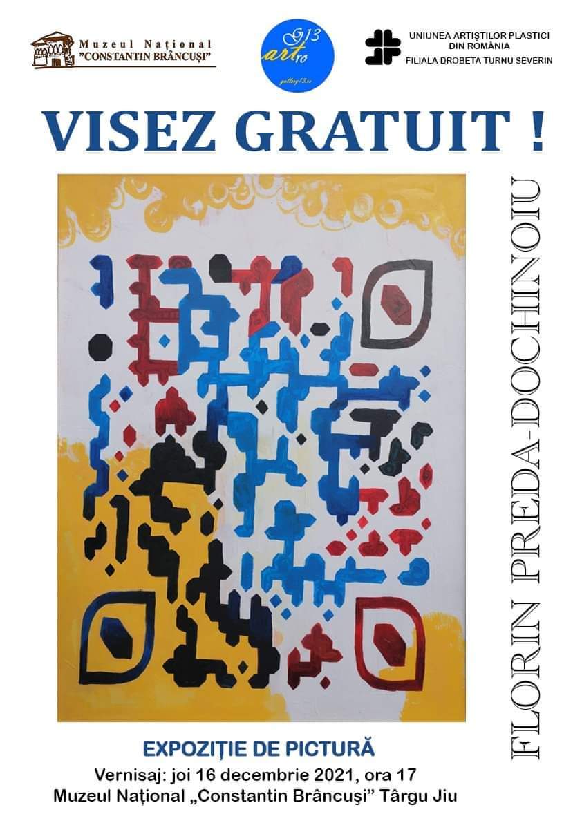 Muzeul Național „Constantin Brâncuși”, Uniunea Artiștilor Plastici – filiala Drobeta-Turnu Severin și Gallery13.ro vă invită joi, 16 decembrie, ora 17.00, la vernisajul expoziției de pictură „Visez gratuit”, semnată Florin Preda-Dochinoiu.
