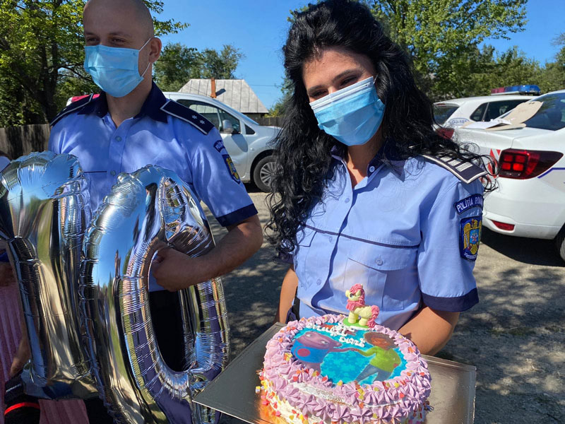 O fetiță în vârstă de 10 ani, din Scoarța, a avut parte de o surpriză de proporții din partea polițiștilor gorjeni, chiar de ziua ei de naștere. Micuța a primit, vineri, primul tort din viaţa ei, o pereche de cercei, dar şi o tabletă care să o ajute la şcoală. Și frățiorul său în vârstă de 9 ani a primit în dar o tabletă pe care să o folosească la lecții.