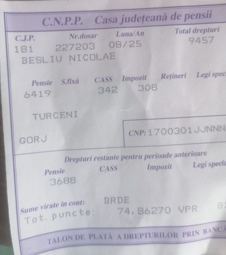 Nemulțumit după ce pensia i-a venit redusă cu nu mai puțin de 3700 de lei, un fost energetician de la Termocentrala Turceni, Nicolae Beșliu, amenință cu greva foamei, de luni, în fața Casei de Pensii Gorj.