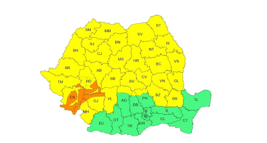 Mare parte din România intră luni, de la ora 10:00, sub avertizare Cod galben de vreme rea, în timp ce zonele montane din județele Caraș-Severin, Mehedinți, Gorj și Hunedoara se vor afla sub Cod portocaliu de ninsori abundente, avertizează meteorologii.