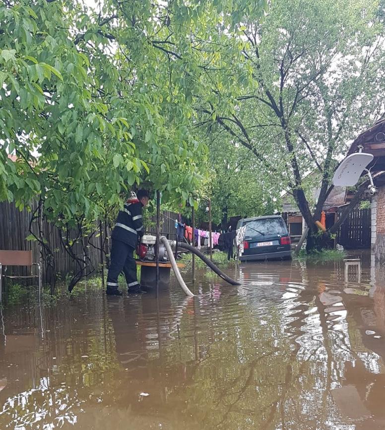 Zeci de gospodării inundate la Târgu Jiu, în această dimineaţă, în urma unei ruperi de nori.