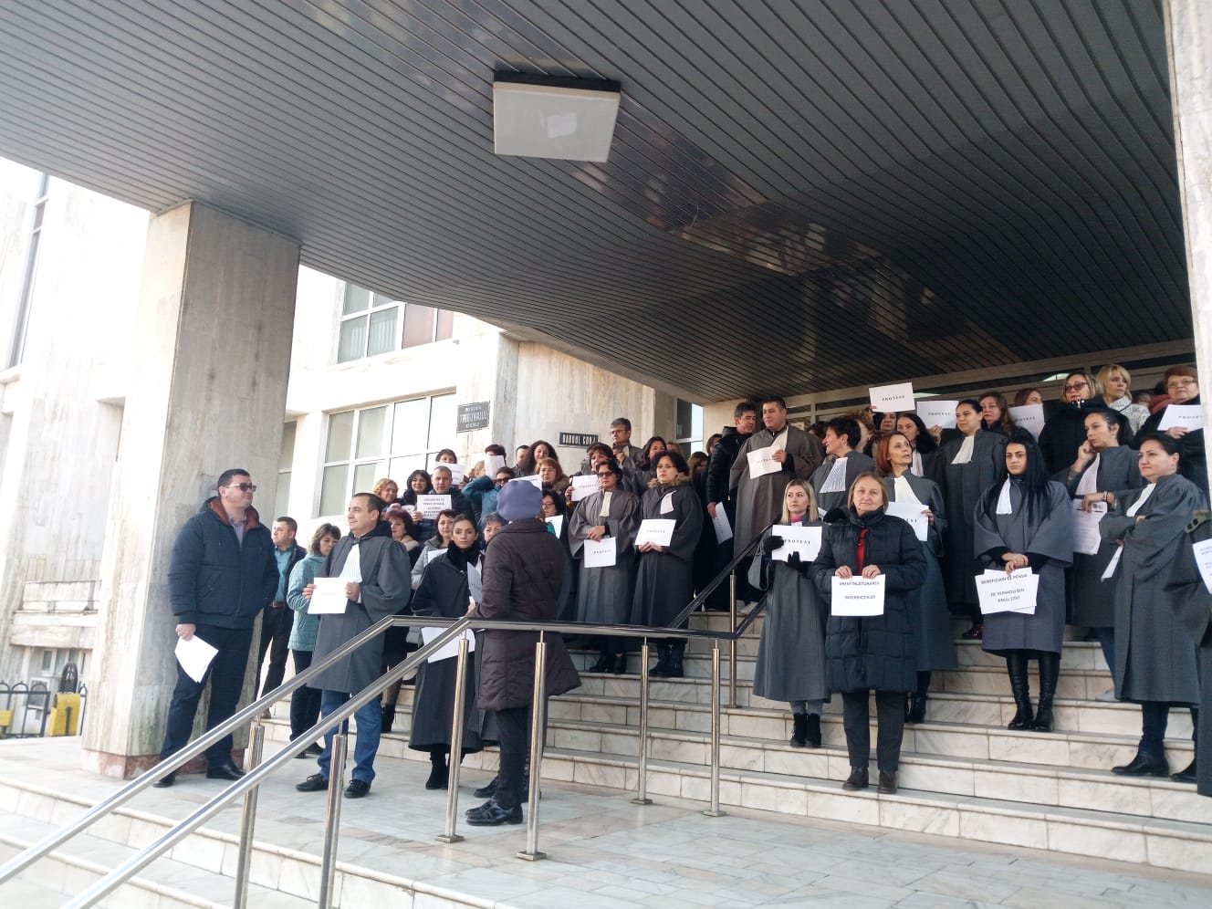 Aproximativ 50 de grefieri din cadrul Judecătoriei Târgu Jiu și Tribunalului Gorj au întrerupt, la ora 10,00, activitatea și protestează pe scările Palatului de Justiție cu privire la propunerea de eliminarea pensiilor de serviciu de care beneficiază magistrații. Protestul se desfășoară până la ora 13,00, astfel încât toate ședințele de judecată nu se pot desfășura. […]