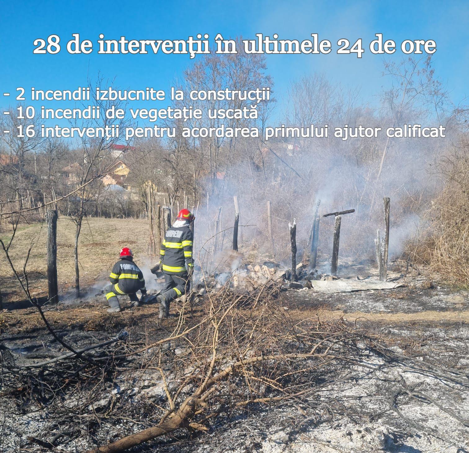 În ultimele 24 de ore pompierii gorjeni au fost solicitați să intervină pentru gestionarea a 28 de situații de urgență, astfel: