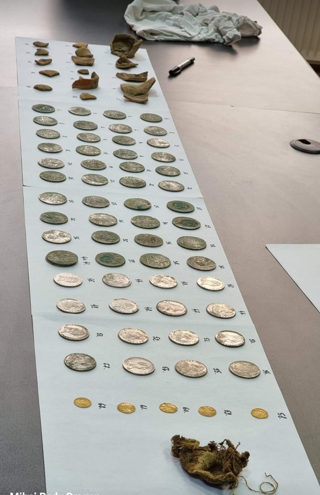 Mihai Radu Drăgan, din Turceni, arheolog în timpul liber, a descoperit într-un vas de ceramică zeci de monede din aur și argint. Bărbatul a folosit un aparat de detecție, iar cele 62 de monede descoperite au fost predate luni Direcției Județene de Cultură Gorj.