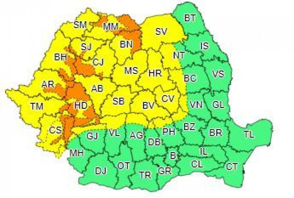 Administraţia Naţională de Meteorologie (ANM) a emis o avertizare Cod galben valabilă de marţi, de la ora 13.00, până miercuri, la ora 8.00, privind intensificări ale vântului, precipitaţii, iar la altitudini de peste 1.700 de metri – ninsori viscolite.